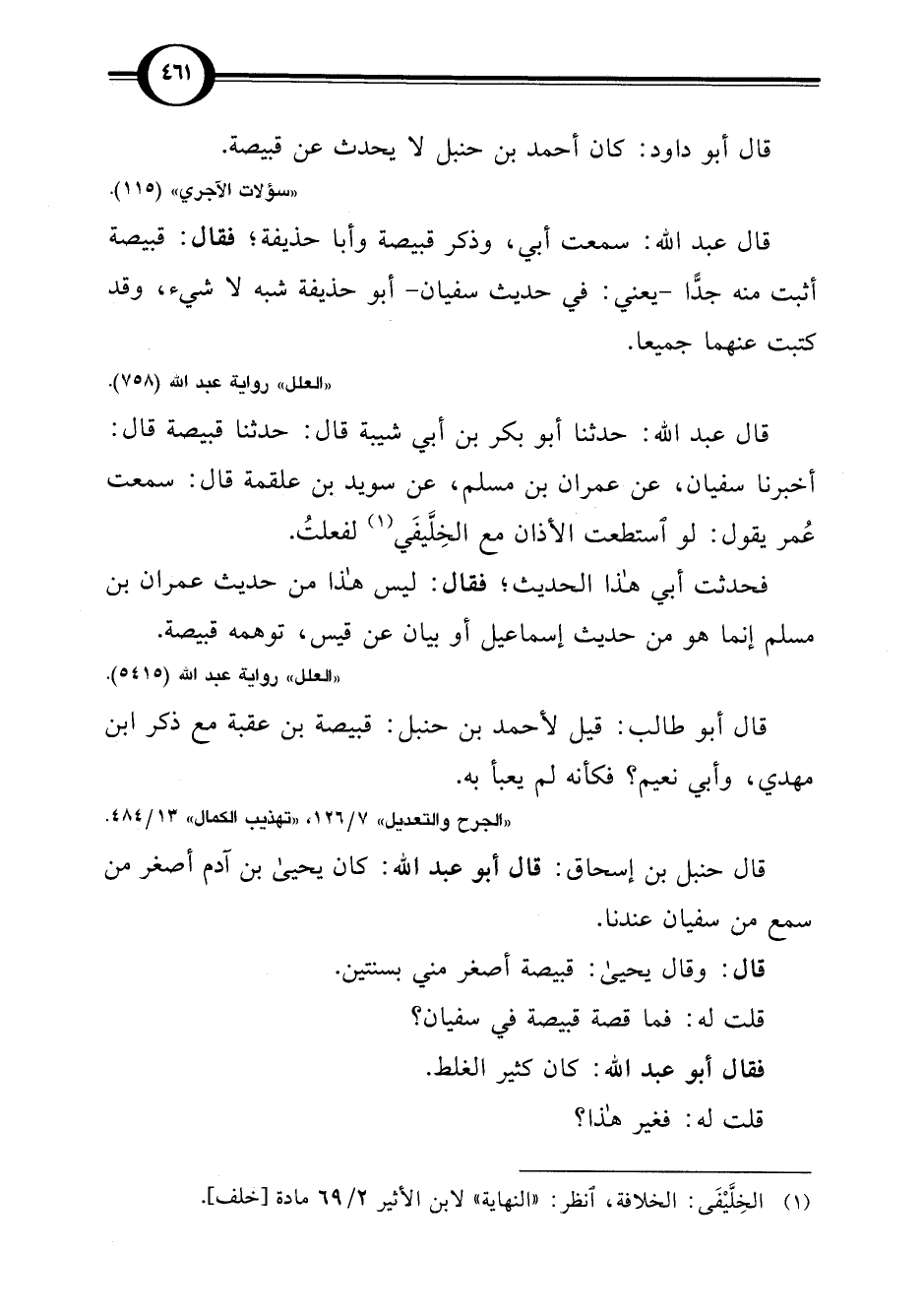 قال أبو داود: كان أحمد بن حنبل لا يحدث عن قبيصة.