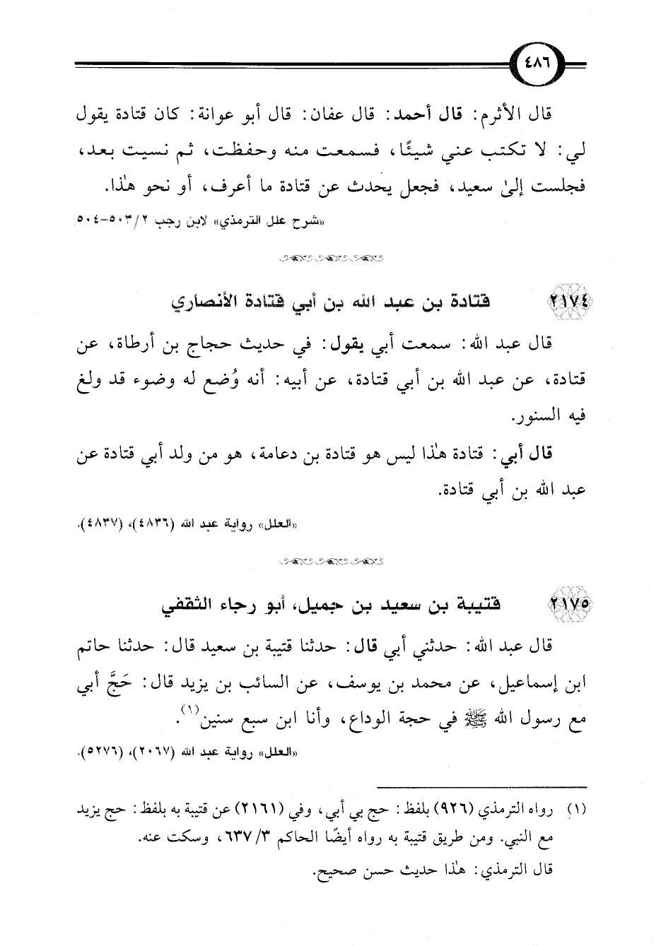 "شرح علل الترمذي" لابن رجب 2/ 503 - 504