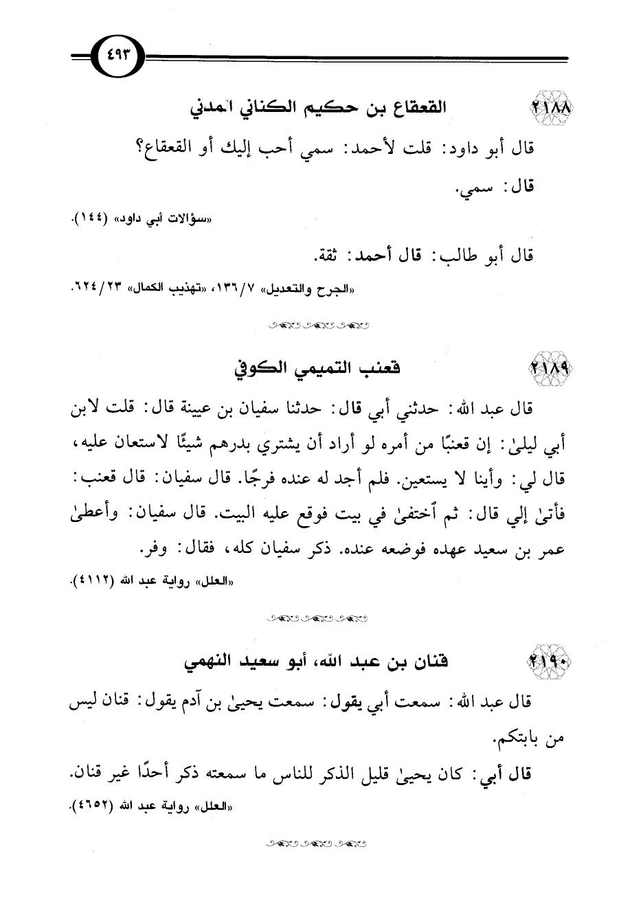 قال عبد اللَّه: سمعت أبي يقول: سمعت يحيى بن آدم يقول: قنان ليس من بابتكم.