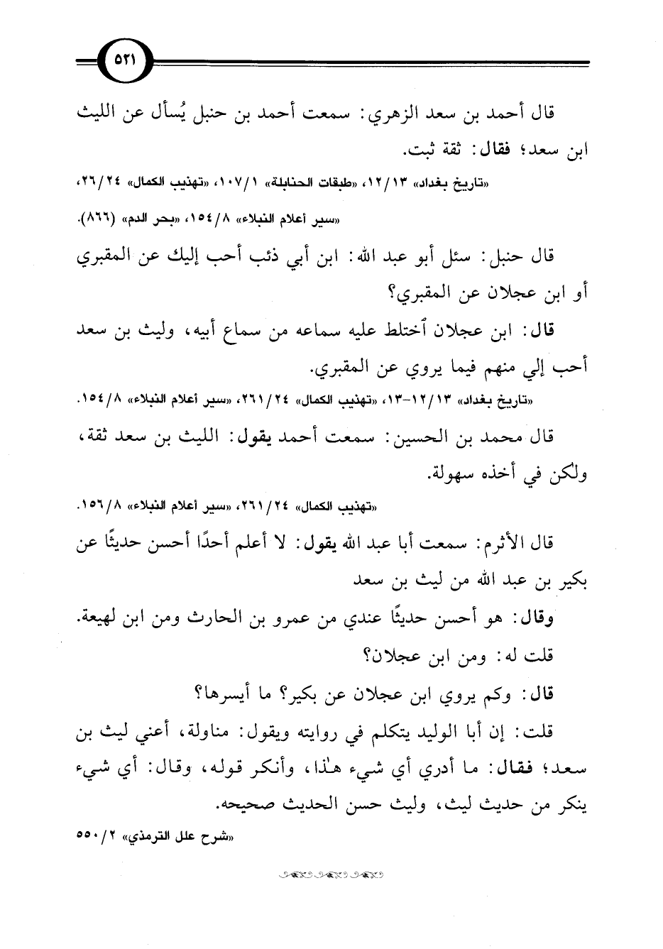 "شرح علل الترمذي" 2/ 550