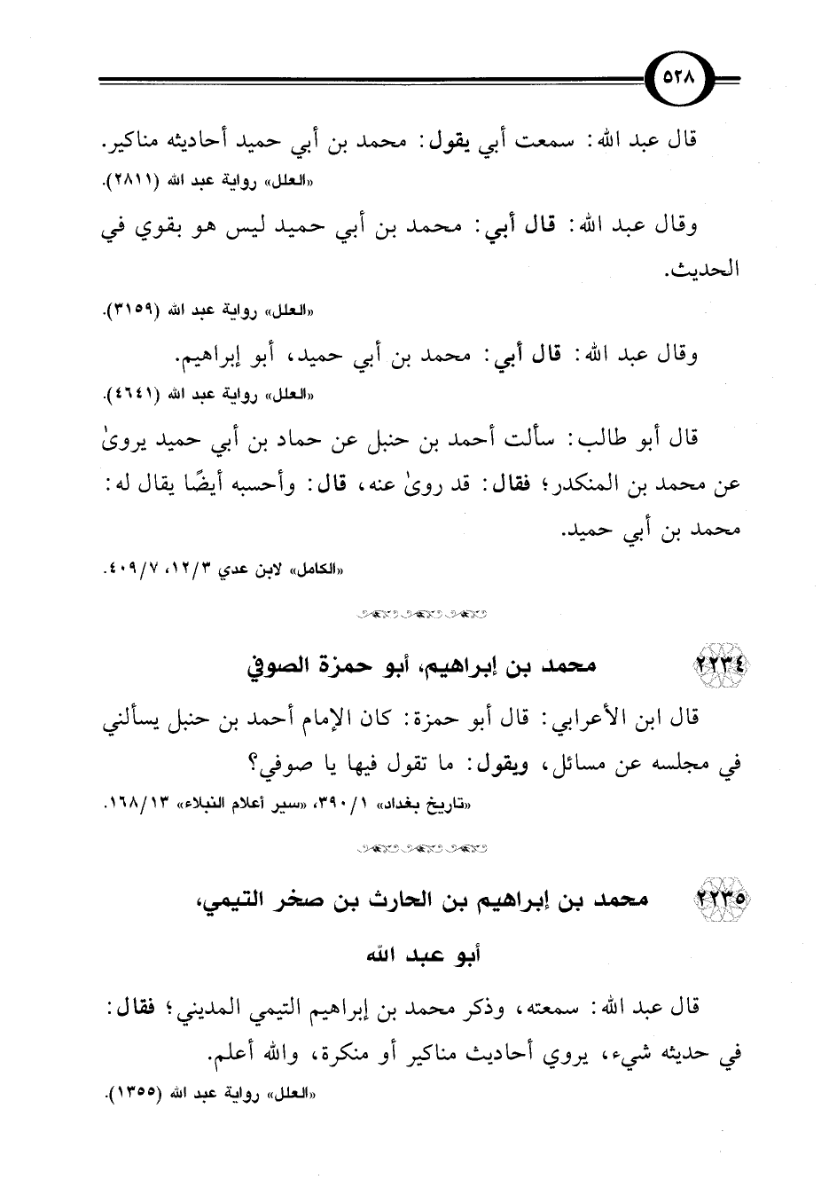 وقال عبد اللَّه: قال أبي: محمد بن أبي حميد، أبو إبراهيم.