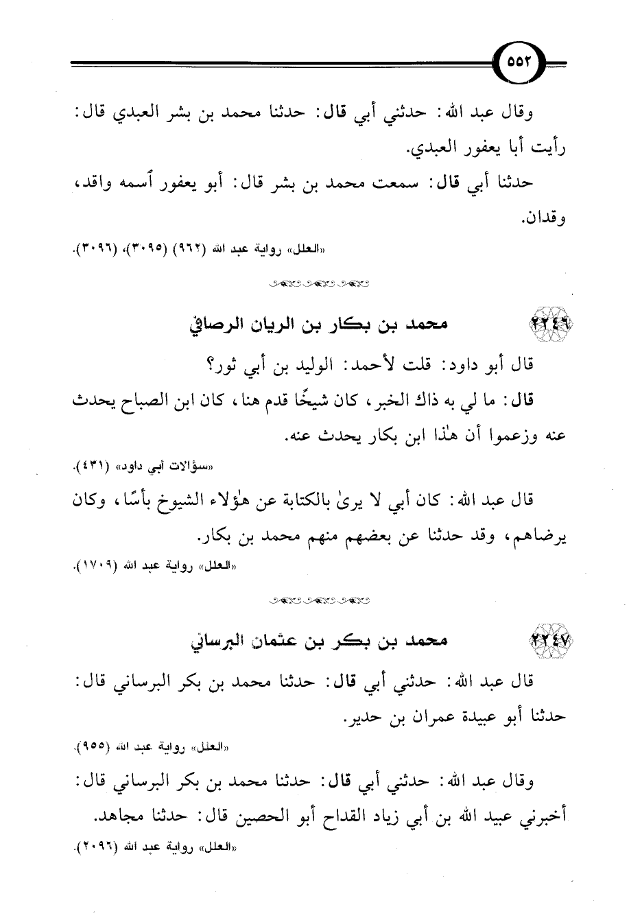 "العلل" رواية عبد اللَّه (962) (3095)، (3096)