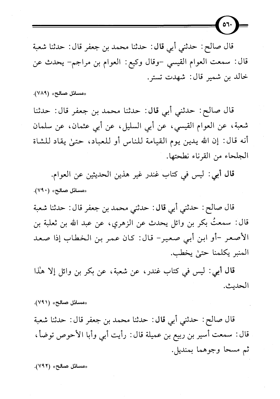 قال أبي: ليس في كتاب غندر غير هذين الحديثين عن العوام.