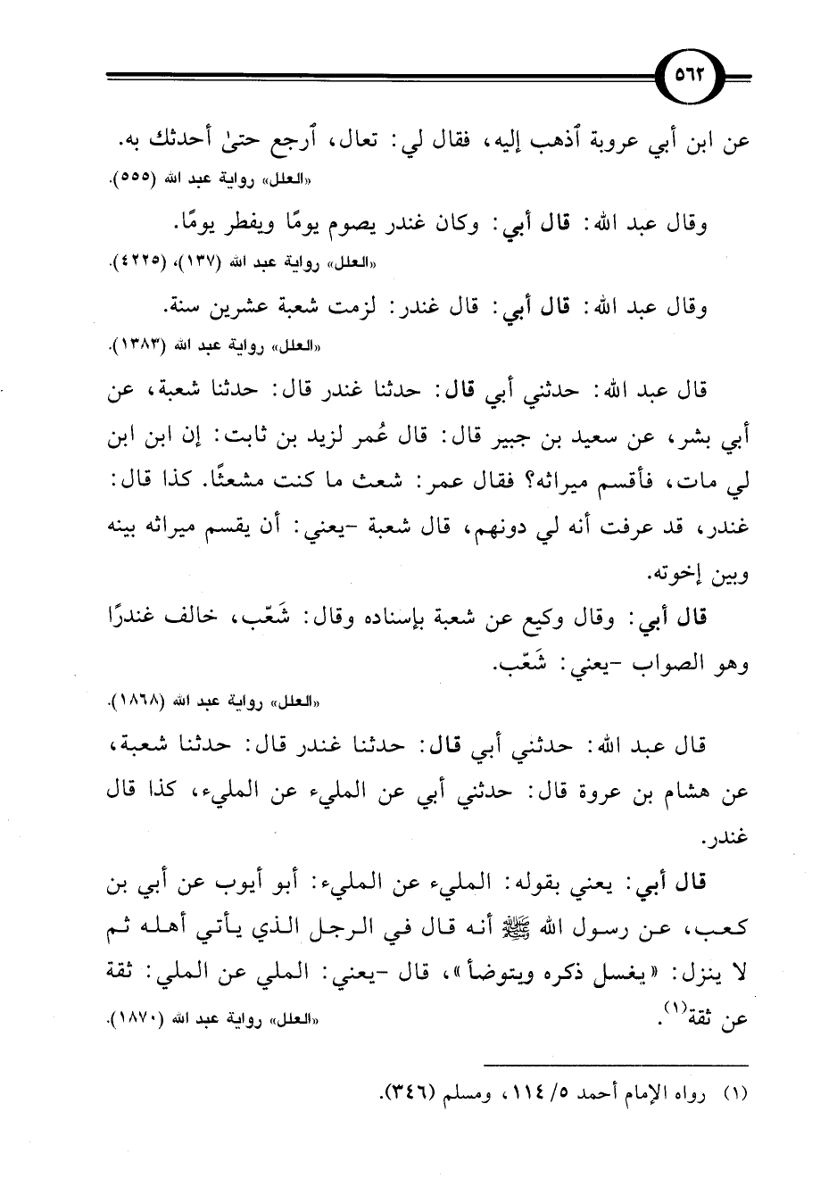 "العلل" رواية عبد اللَّه (1870).
