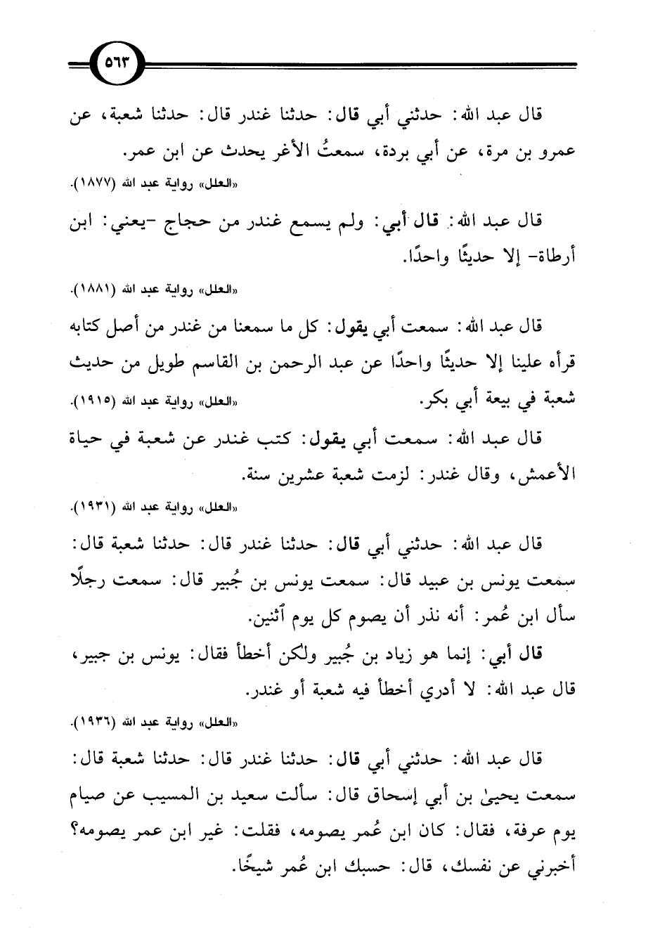 "العلل" رواية عبد اللَّه (1877).