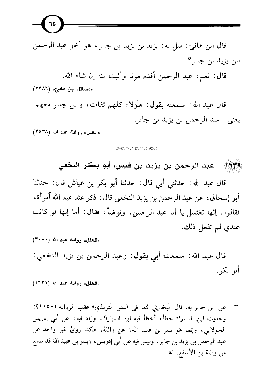 قال عبد اللَّه: سمعت أبي يقول: وعبد الرحمن بن يزيد النخعي: أبو بكر.