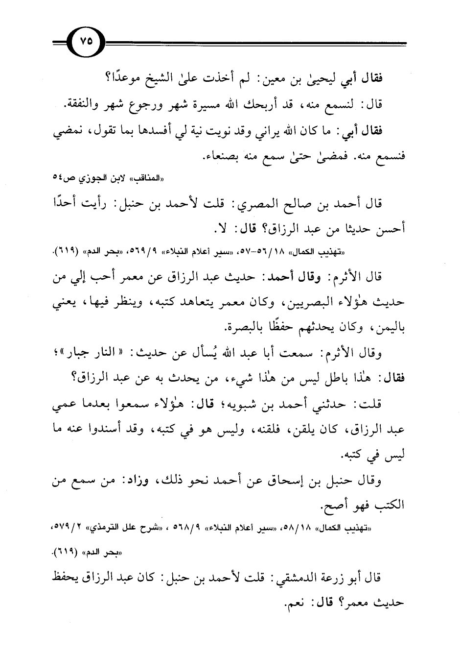 قال أحمد بن صالح المصري: قلت لأحمد بن حنبل: رأيت أحدًا أحسن حديثًا من عبد الرزاق؟ قال: لا.