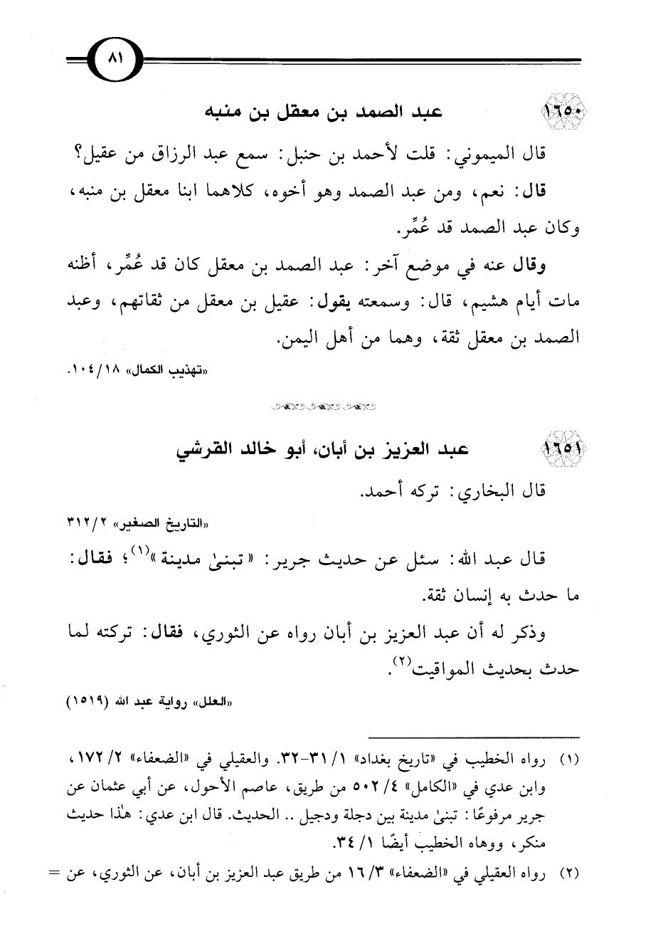 قال: نعم، ومن عبد الصمد وهو أخوه، كلاهما ابنا معقل بن منبه، وكان عبد الصمد قد عُمِّر.