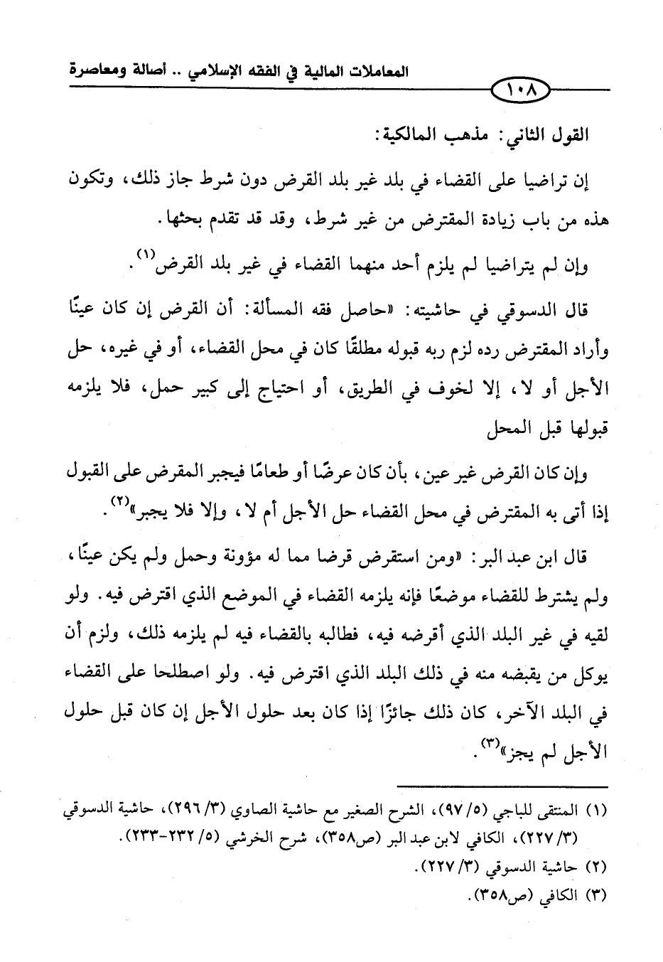 (¬١) المنتقى للباجي (٥/ ٩٧)، الشرح الصغير مع حاشية الصاوي (٣/ ٢٩٦)، حاشية الدسوقي (٣/ ٢٢٧)، الكافي لابن عبد البر (ص ٣٥٨)، شرح الخرشي (٥/ ٢٣٢ - ٢٣٣).
