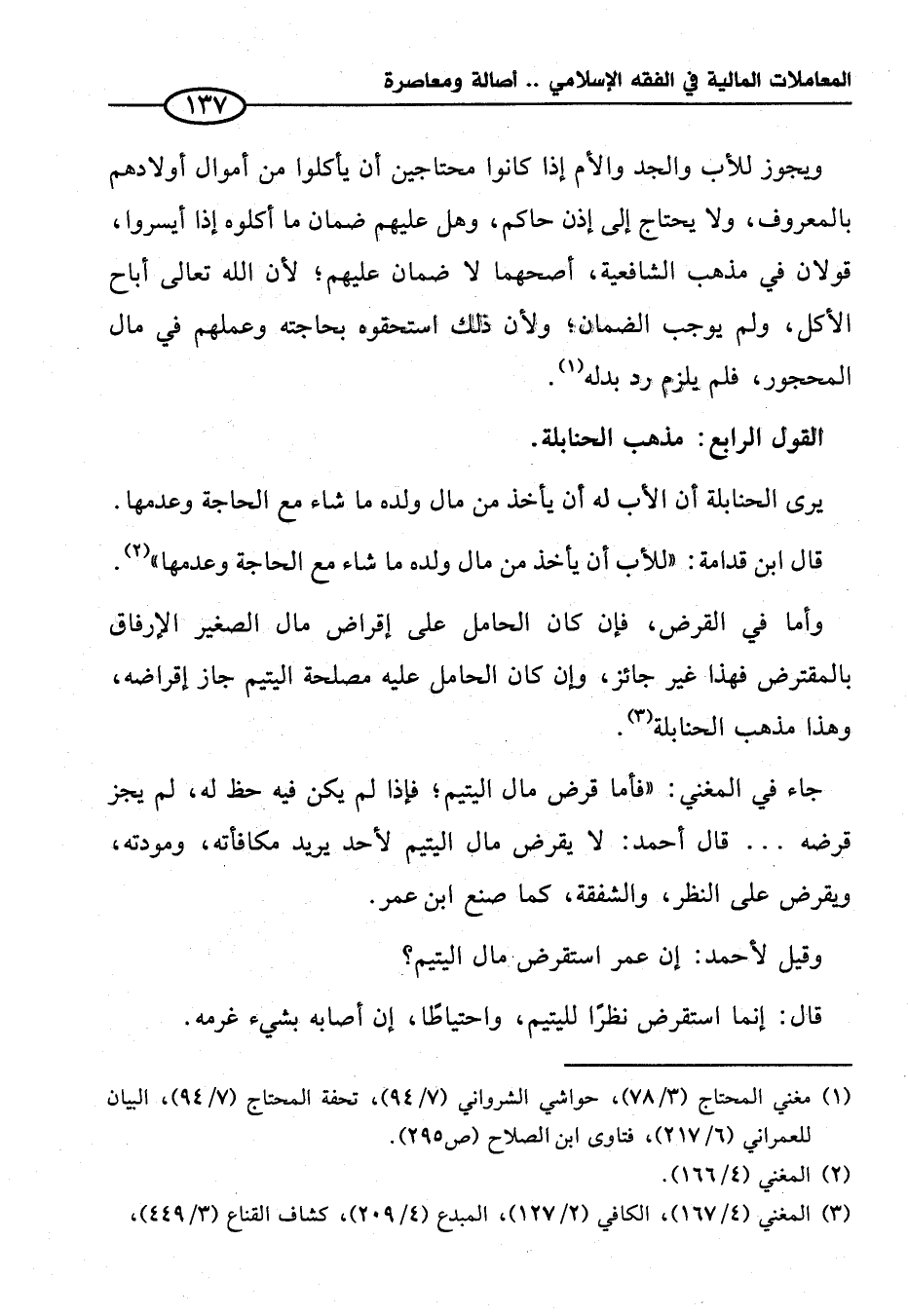 (¬٣) المغني (٤/ ١٦٧)، الكافي (٢/ ١٢٧)، المبدع (٤/ ٢٠٩)، كشاف القناع (٣/ ٤٤٩)،