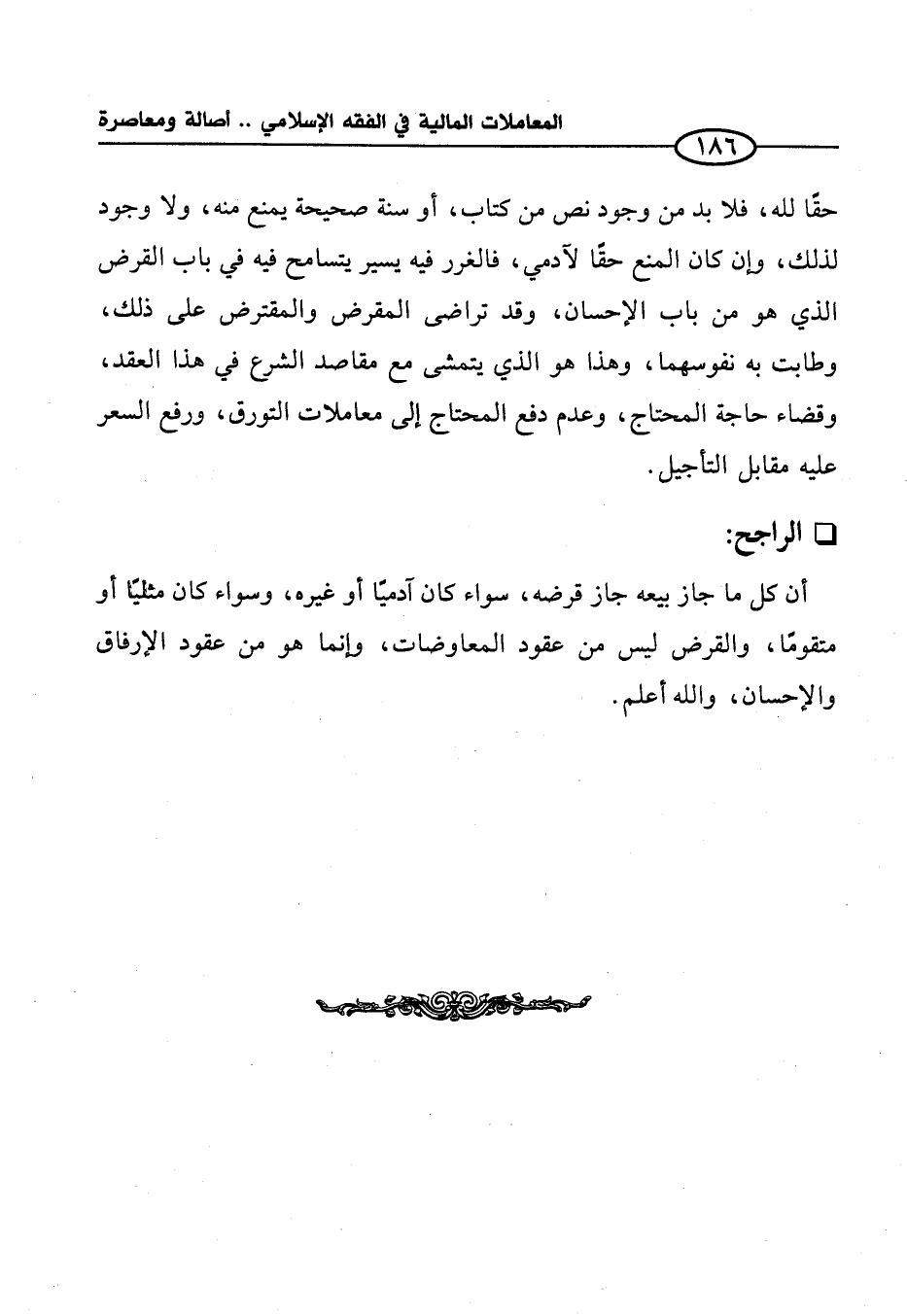 حقًا لله، فلا بد من وجود نص من كتاب، أو سنة صحيحة يمنع منه، ولا وجود لذلك، وإن كان المنع حقًا لآدمي، فالغرر فيه يسير يتسامح فيه في باب القرض الذي هو من باب الإحسان، وقد تراضى المقرض والمقترض على ذلك، وطابت به نفوسهما، وهذا هو الذي يتمشى مع مقاصد الشرع في هذا العقد، وقضاء حاجة المحتاج، وعدم دفع المحتاج إلى معاملات التورق، ورفع السعر عليه مقابل التأجيل.