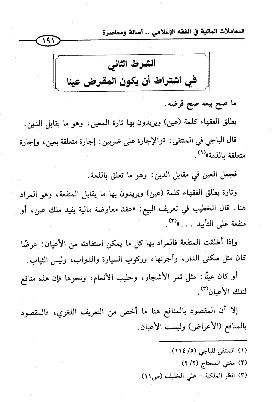 الشرط الثاني في اشتراط أن يكون المقرض عينا