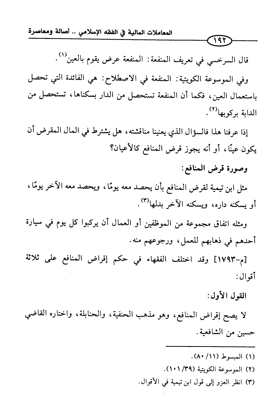إذا عرفنا هذا فالسؤال الذي يعنينا مناقشته، هل يشترط في المال المقرض أن يكون عينًا، أو أنه يجوز قرض المنافع كالأعيان؟