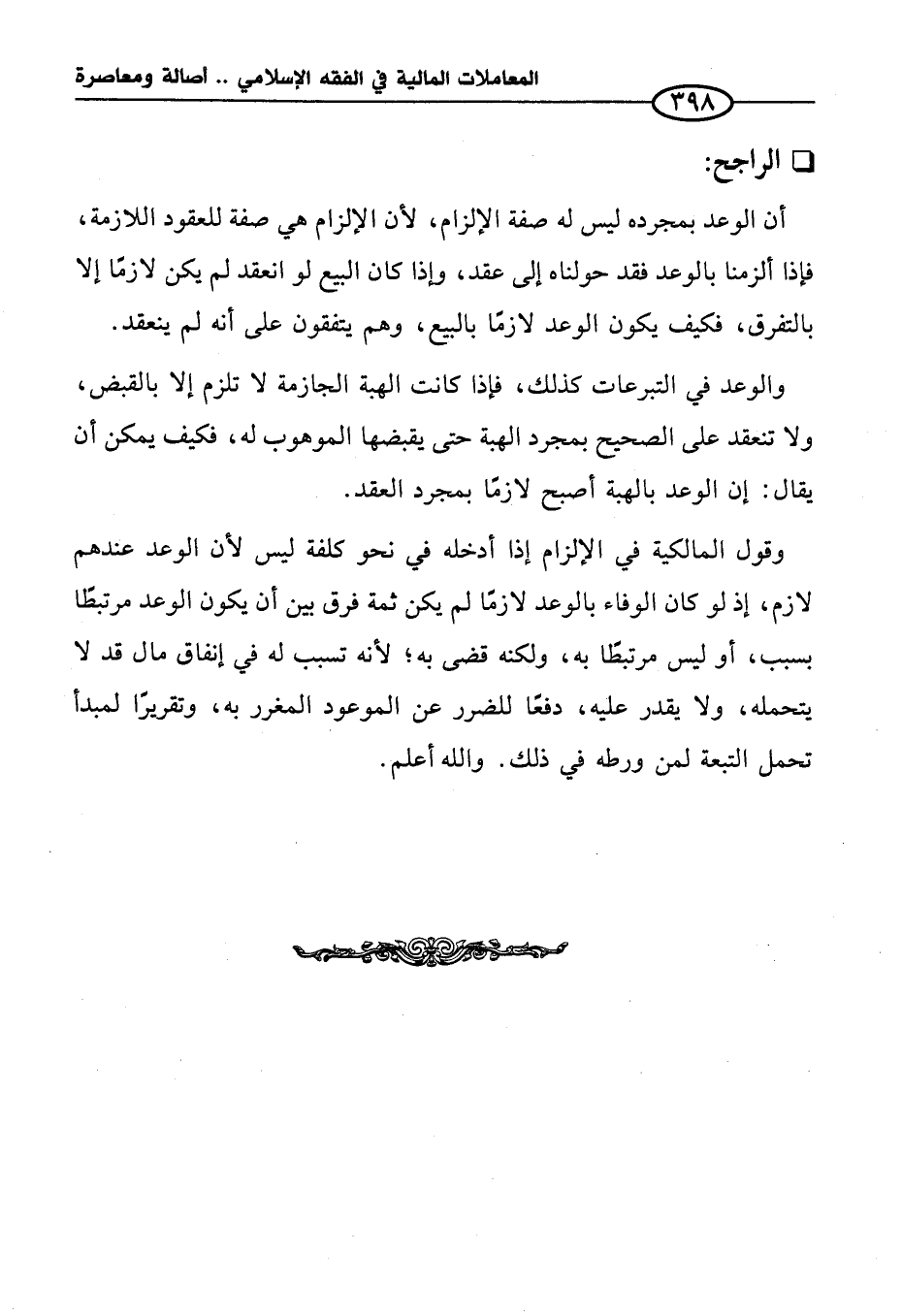 وقول المالكية في الإلزام إذا أدخله في نحو كلفة ليس لأن الوعد عندهم لازم، إذ لو كان الوفاء بالوعد لازمًا لم يكن ثمة فرق بين أن يكون الوعد مرتبطًا بسبب، أو ليس مرتبطًا به، ولكنه قضى به؛ لأنه تسبب له في إنفاق مال قد لا يتحمله، ولا يقدر عليه، دفعًا للضرر عن الموعود المغرر به، وتقريرًا لمبدأ تحمل التبعة لمن ورطه في ذلك. والله أعلم.