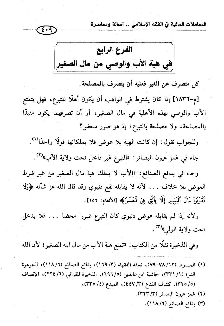الفرع الرابع في هبة الأب والوصي من مال الصغير