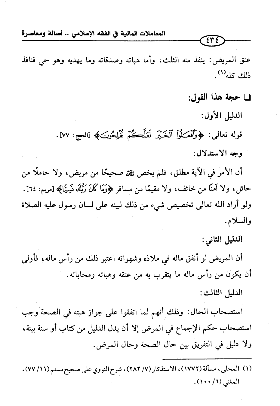 استصحاب الحال: وذلك أنهم لما اتفقوا على جواز هبته في الصحة وجب استصحاب حكم الإجماع في المرض إلا أن يدل الدليل من كتاب أو سنة بينة، ولا دليل في التفريق بين حال الصحة وحال المرض.