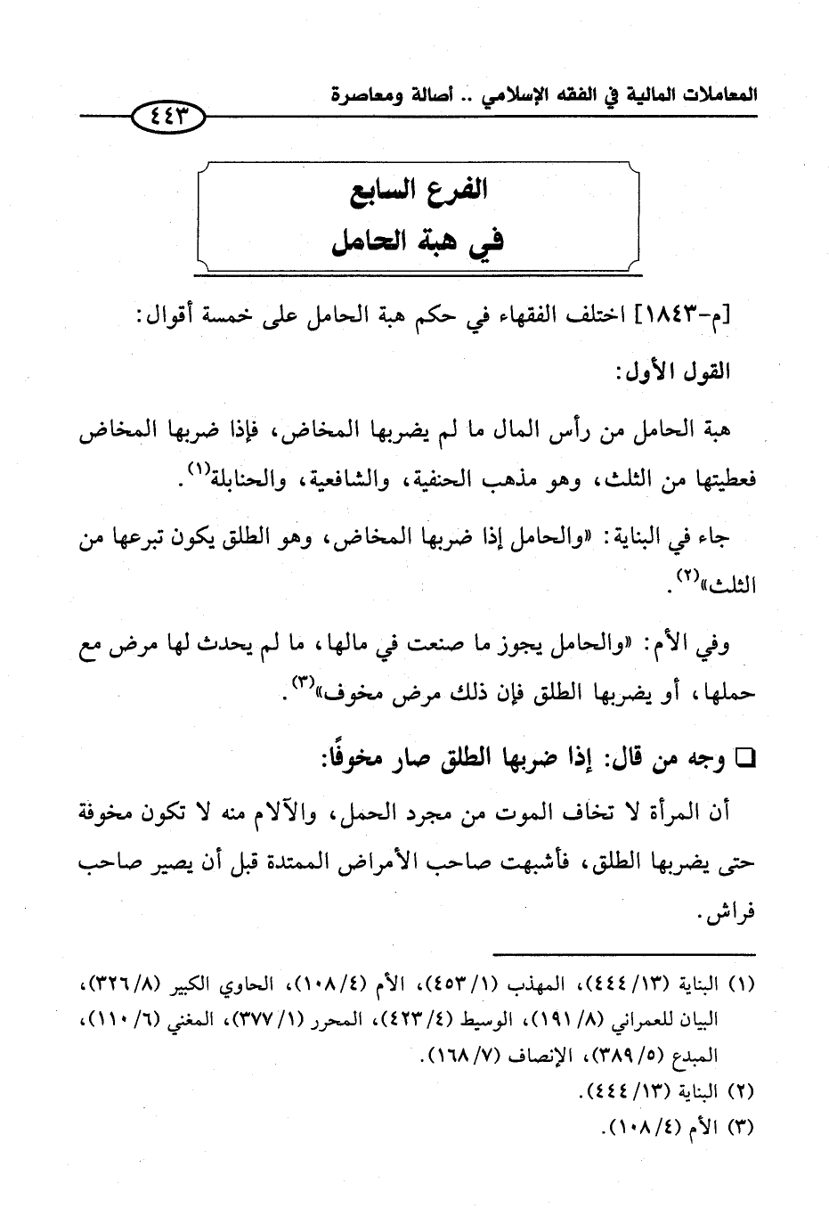 [م - ١٨٤٣] اختلف الفقهاء في حكم هبة الحامل على خمسة أقوال:
