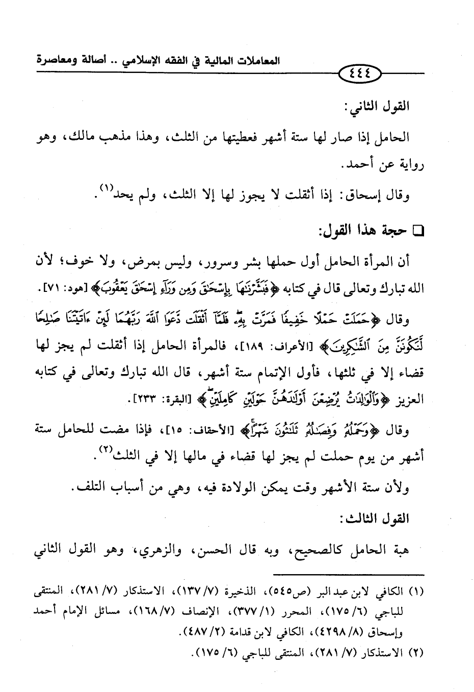 (¬١) الكافي لابن عبد البر (ص ٥٤٥)، الذخيرة (٧/ ١٣٧)، الاستذكار (٧/ ٢٨١)، المنتقى للباجي (٦/ ١٧٥)، المحرر (١/ ٣٧٧)، الإنصاف (٧/ ١٦٨)، مسائل الإمام أحمد وإسحاق (٨/ ٤٢٩٨)، الكافي لابن قدامة (٢/ ٤٨٧).