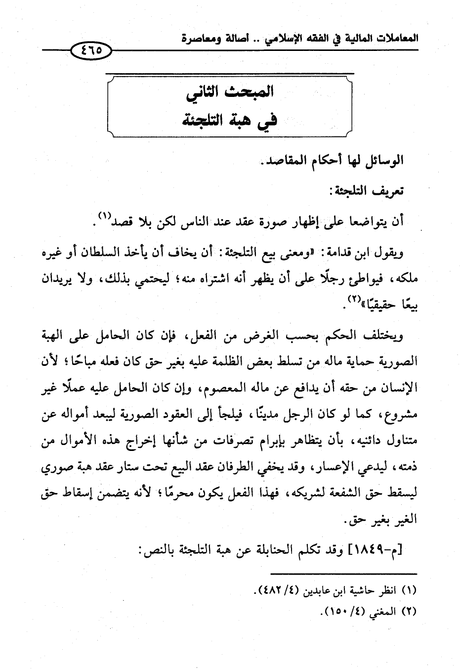 [م - ١٨٤٩] وقد تكلم الحنابلة عن هبة التلجئة بالنص: