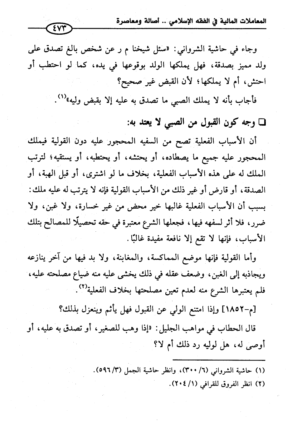 (¬١) حاشية الشرواني (٦/ ٣٠٠)، وانظر حاشية الجمل (٣/ ٥٩٦).