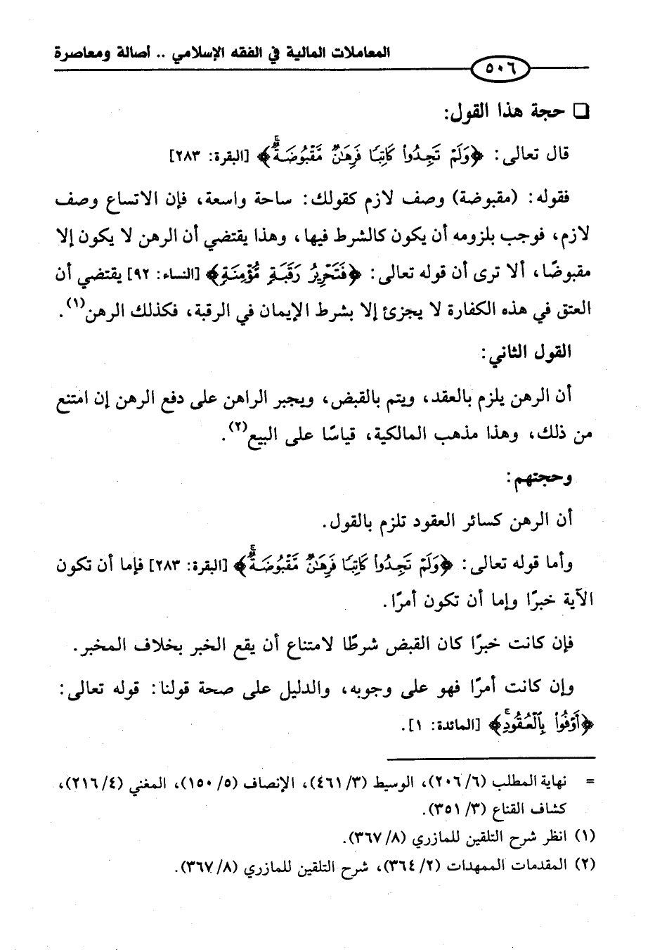 (¬٢) المقدمات الممهدات (٢/ ٣٦٤)، شرح التلقين للمازري (٨/ ٣٦٧).