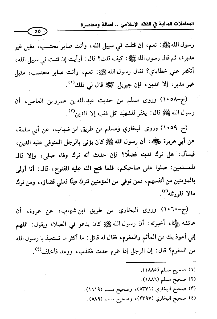 (ح -١٠٥٨) وروى مسلم من حديث عبد الله بن عمرو بن العاص، أن رسول الله - صلى الله عليه وسلم - قال: يغفر للشهيد كل ذنب إلا الدين (¬٢).