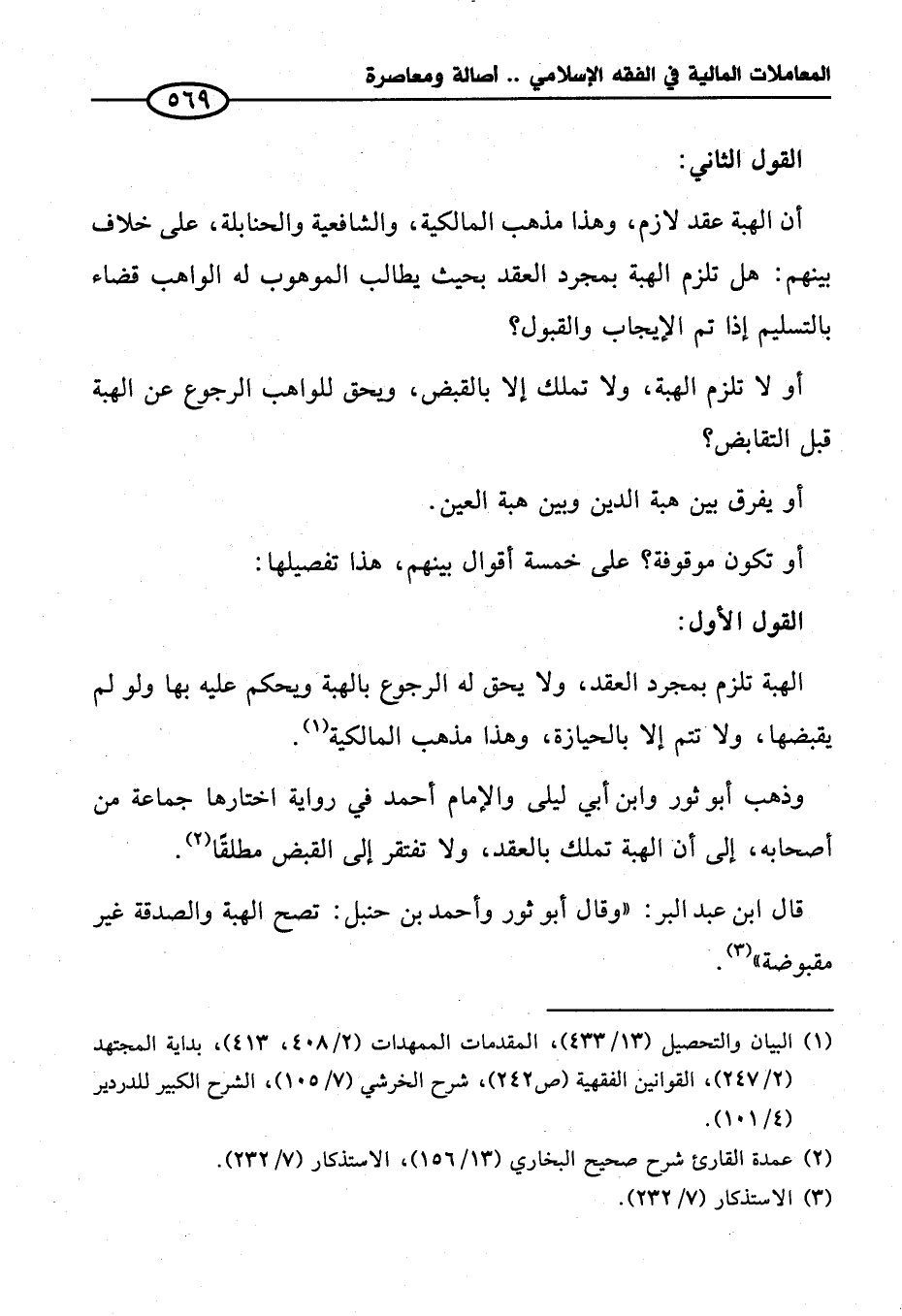 وذهب أبو ثور وابن أبي ليلى والإمام أحمد في رواية اختارها جماعة من أصحابه، إلى أن الهبة تملك بالعقد، ولا تفتقر إلى القبض مطلقًا (¬٢).