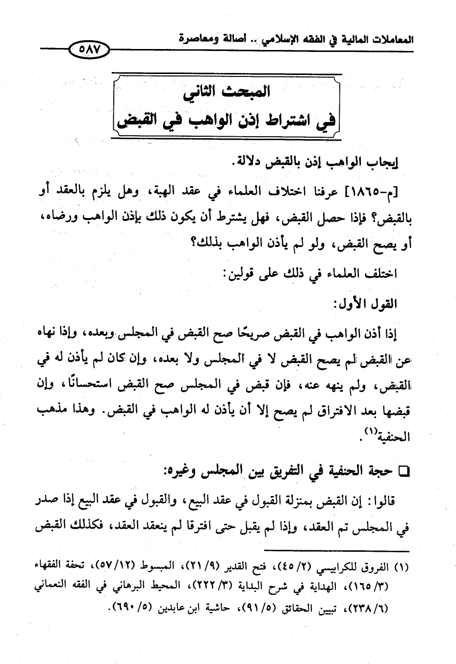 المبحث الثاني في اشتراط إذن الواهب في القبض