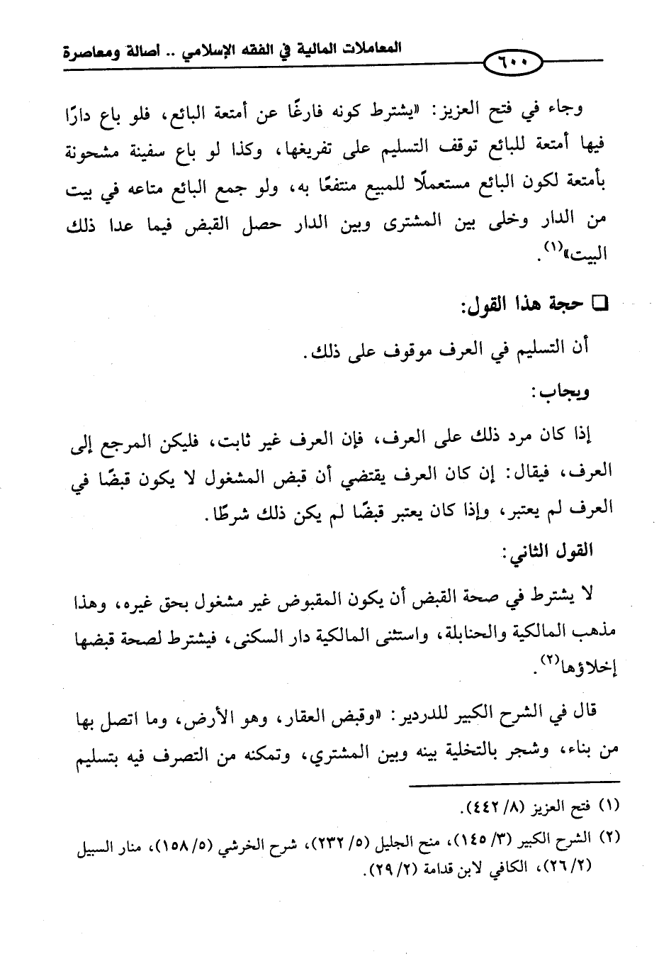 (¬٢) الشرح الكبير (٣/ ١٤٥)، منح الجليل (٥/ ٢٣٢) , شرح الخرشي (٥/ ١٥٨)، منار السبيل (٢/ ٢٦) , الكافي لابن قدامة (٢/ ٢٩).
