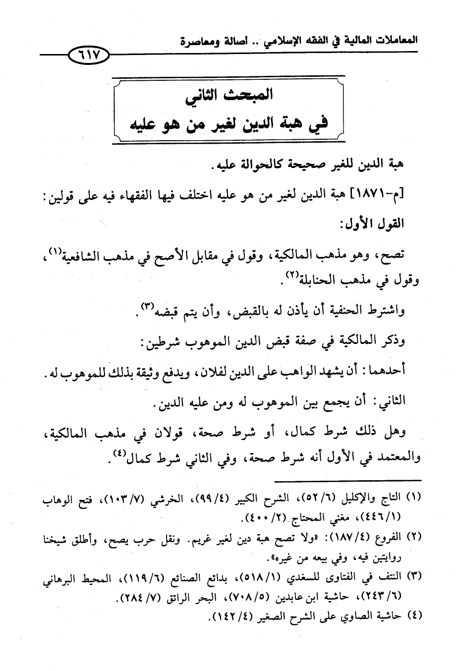 المبحث الثاني في هبة الدين لغير من هو عليه