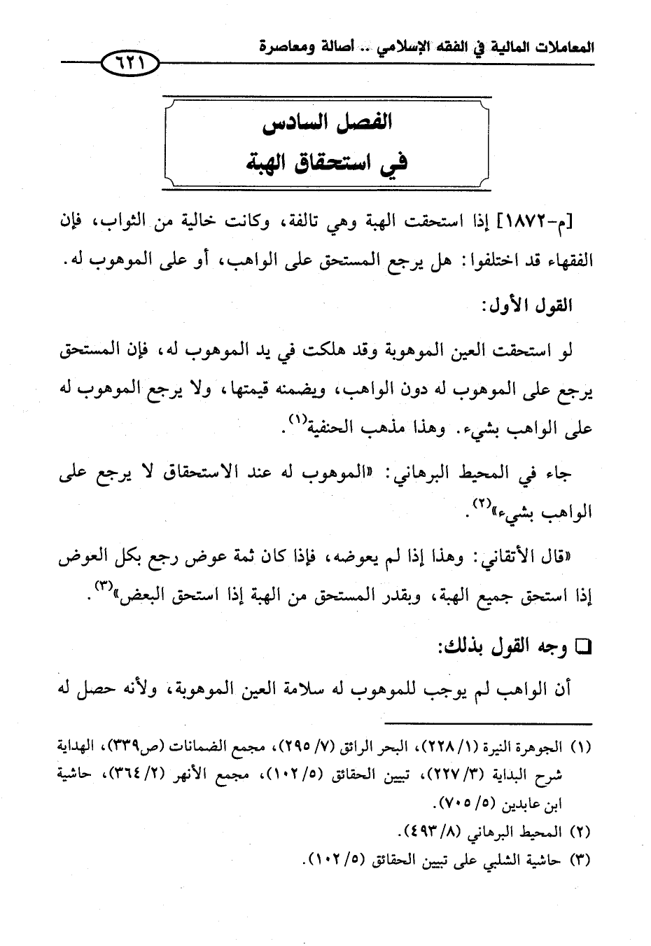 الفصل السادس في استحقاق الهبة