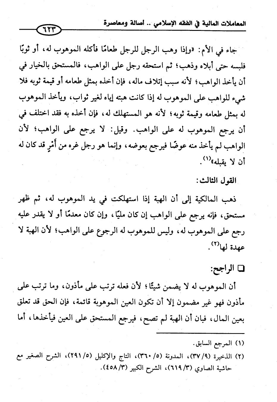 (¬٢) الذخيرة (٩/ ٣٧)، المدونة (٥/ ٣٦٠)، التاج والإكليل (٥/ ٢٩١)، الشرح الصغير مع حاشية الصاوي (٣/ ٦١٩)، الشرح الكبير (٣/ ٤٥٨).