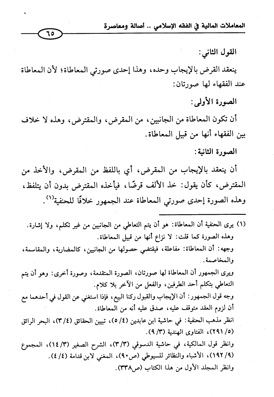 (¬١) يرى الحنفية أن المعاطاة: هو أن يتم التعاطي من الجانبين من غير تكلم، ولا إشارة.