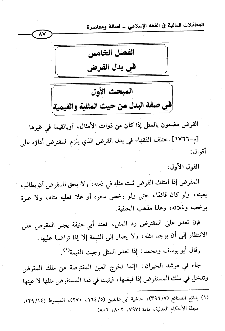 القرض مضمون بالمثل إذا كان من ذوات الأمثال، أو بالقيمة في غيرها.