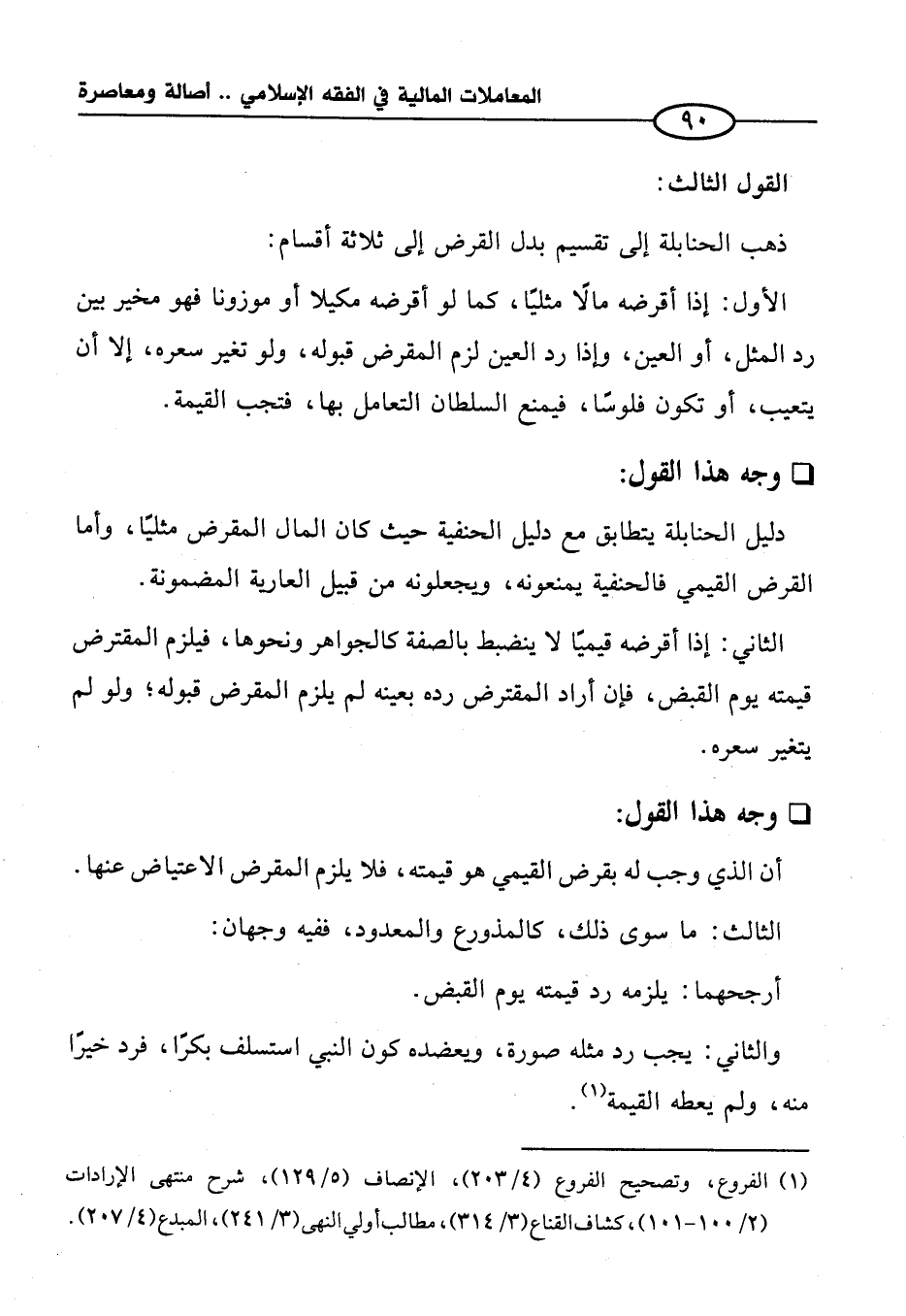 ذهب الحنابلة إلى تقسيم بدل القرض إلى ثلاثة أقسام: