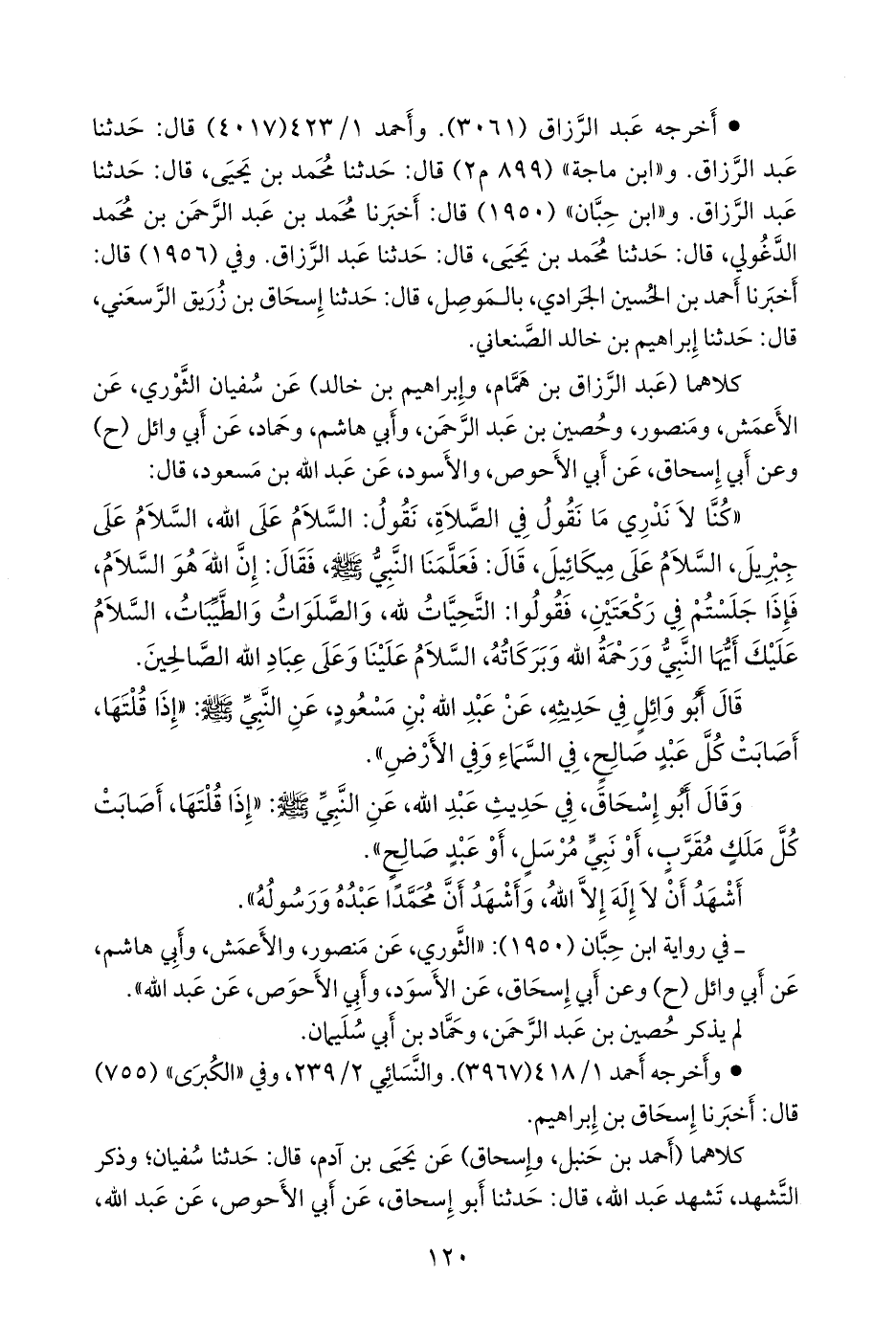 - في رواية النَّسَائي، قال يحيى بن آدم: سمعت سفيان يتشهد بهذا في المكتوبة، والتطوع، ويقول: حدثنا أَبو إسحاق، عن أبي الأحوص، عن عبد الله، عن النبي (ح) وحدثنا منصور، وحماد، عن أبي وائل، عن عبد الله، عن النبي صَلى الله عَليه وسَلم.