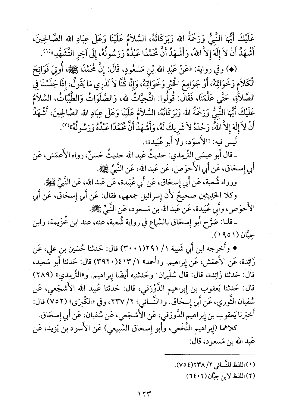 - قال التِّرمِذي: حديث ابن مسعود قد روي عنه من غير وجه، وهو أصح حديث عن النبي صَلى الله عَليه وسَلم في التشهد.