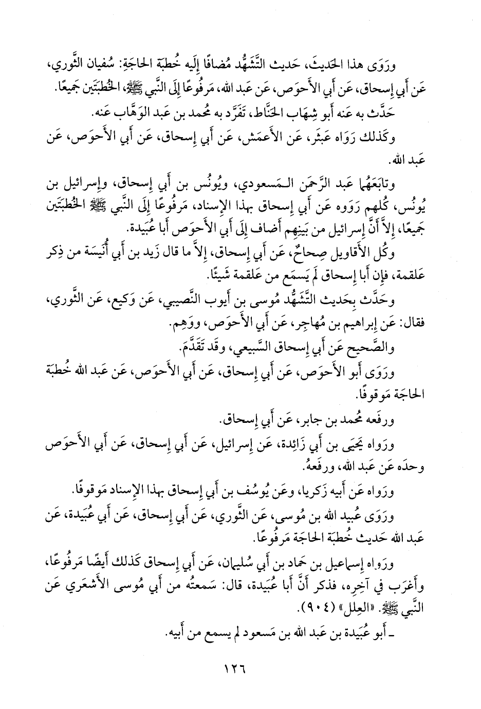 وتابعهما عبد الرَّحمَن المَسعودي، ويونس بن أبي إسحاق، وإسرائيل بن يونس، كلهم رووه عن أبي إسحاق بهذا الإسناد، مرفوعًا إلى النبي صَلى الله عَليه وسَلم الخطبتين جميعا، إلا أن إسرائيل من بينهم أضاف إلى أبي الأحوص أبا عبيدة.
