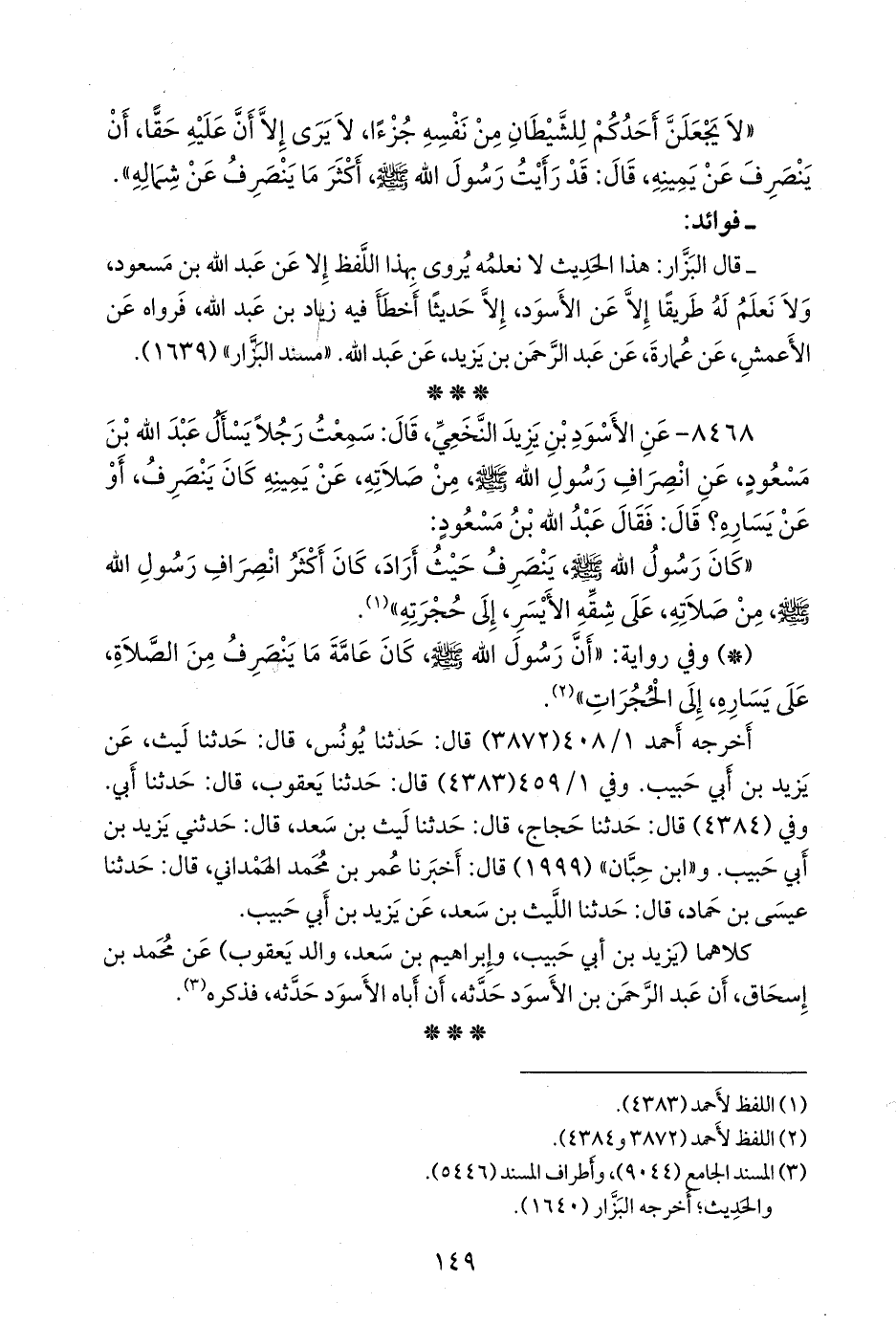 ٨٤٦٨ - عن الأسود بن يزيد النَّخَعي، قال: سمعت رجلا يسأل عبد الله بن مسعود، عن انصراف رسول الله صَلى الله عَليه وسَلم من صلاته، عن يمينه كان ينصرف، أو عن يساره؟ قال: فقال عبد الله بن مسعود: