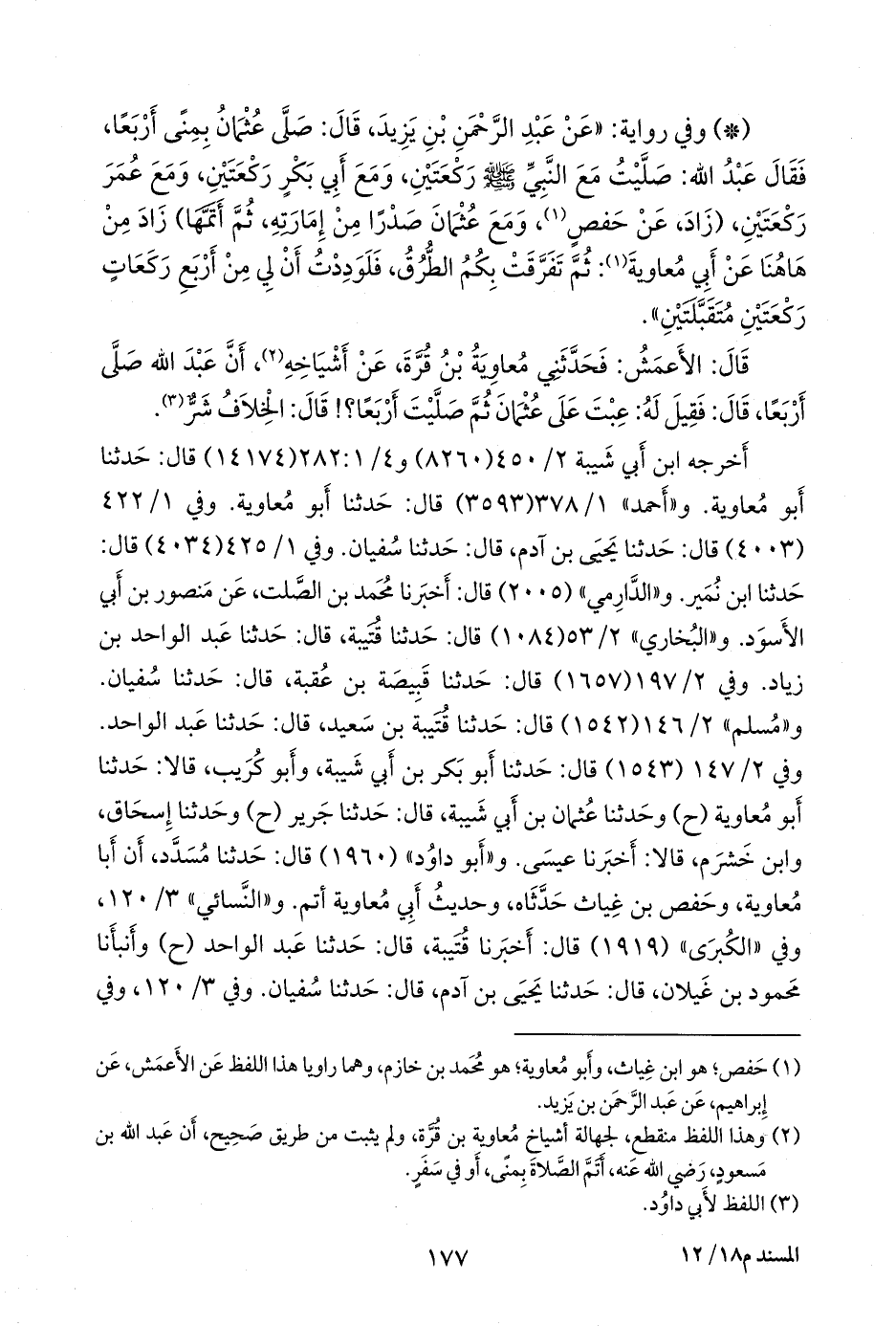 أخرجه ابن أبي شيبة (٨٢٦٠) و ٤/ ٢٨٢:١ (١٤١٧٤) قال: حدثنا أَبو معاوية. و «أحمد» (٣٥٩٣) قال: حدثنا أَبو معاوية. وفي ١/ ٤٢٢ (٤٠٠٣) قال: حدثنا يحيى بن آدم، قال: حدثنا سفيان. وفي ١/ ٤٢٥ (٤٠٣٤) قال: حدثنا ابن نُمير. و «الدَّارِمي» (٢٠٠٥) قال: أخبرنا محمد بن الصلت، عن منصور بن أبي الأسود. و «البخاري» ٢/ ٤٣ (١٠٨٤) قال: حدثنا قتيبة، قال: حدثنا عبد الواحد بن زياد. وفي ٢/ ١٦١ (١٦٥٧) قال: حدثنا قَبيصَة بن عُقبة، قال: حدثنا سفيان. و «مسلم» ٢/ ١٤٦ (١٥٤٢) قال: حدثنا قتيبة بن سعيد، قال: حدثنا عبد الواحد. وفي ٢/ ١٤٧ (١٥٤٣) قال: حدثنا أَبو بكر بن أبي شيبة، وأَبو كُريب، قالا: حدثنا أَبو معاوية (ح) وحدثنا عثمان بن أبي شيبة، قال: حدثنا جَرير (ح) وحدثنا إسحاق، وابن خَشرَم، قالا: أخبرنا عيسى. و «أَبو داود» (١٩٦٠) قال: حدثنا مُسدد، أن أبا معاوية، وحفص بن غياث حدثاه، وحديث أبي معاوية أتم. و «النَّسَائي» ٣/ ١٢٠، وفي «الكبرى» (١٩١٩) قال: أخبرنا قتيبة، قال: حدثنا عبد الواحد (ح) وأنبأنا محمود بن غَيلان، قال: حدثنا يحيى بن آدم، قال: حدثنا سفيان. وفي ٣/ ١٢٠، وفي