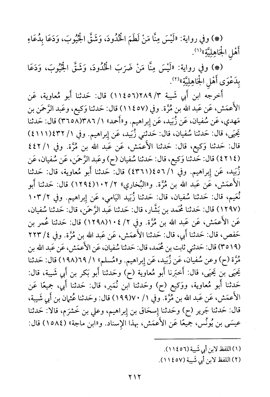 وفي ٢/ ٨٢ (١٢٩٧) قال: حدثنا محمد بن بشار، قال: حدثنا عبد الرَّحمَن، قال: حدثنا سفيان، عن الأعمش، عن عبد الله بن مُرَّة. وفي ٢/ ٨٢ (١٢٩٨) قال: حدثنا عمر بن حفص، قال: حدثنا أبي، قال: حدثنا الأعمش، عن عبد الله بن مُرَّة. وفي ٤/ ١٨٤ (٣٥٢٢) قال: حدثني ثابت بن محمد، قال: حدثنا سفيان، عن الأعمش، عن عبد الله بن مُرَّة (ح) وعن سفيان، عن زبيد، عن إبراهيم. و «مسلم» ١/ ٦٩ (١٩٨) قال: حدثنا يحيى بن يحيى، قال: أخبرنا أَبو معاوية (ح) وحدثنا أَبو بكر بن أبي شيبة، قال: حدثنا أَبو معاوية، ووكيع (ح) وحدثنا ابن نُمير، قال: حدثنا أبي، جميعا عن الأعمش، عن عبد الله بن مُرَّة. وفي ١/ ٧٠ (١٩٩) قال: وحدثنا عثمان بن أبي شيبة، قال: حدثنا جَرير (ح) وحدثنا إسحاق بن إبراهيم، وعلي بن خَشرَم، قالا: حدثنا عيسى بن يونس، جميعا عن الأعمش، بهذا الإسناد. و «ابن ماجة» (١٥٨٤) قال:
