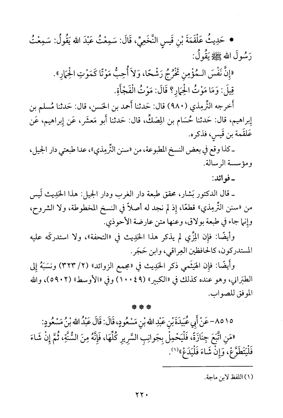 أربعتهم (سفيان الثوري، ومَعمَر بن راشد، وجرير بن عبد الحميد، وحماد) عن منصور بن المُعتَمِر، عن عبيد بن نسطاس، عن أبي عبيدة، فذكره (¬٣).