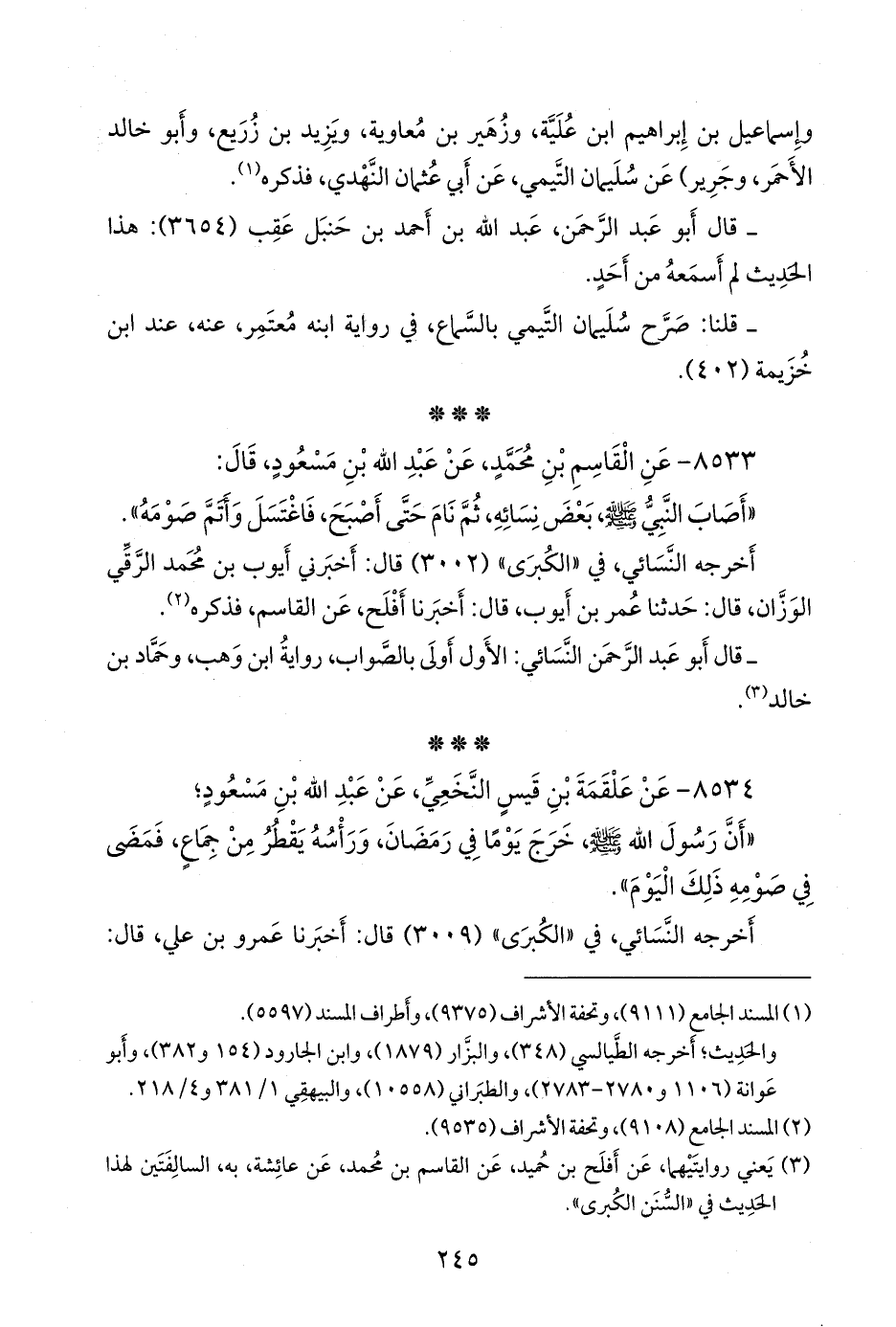 (¬١) المسند الجامع (٩١٠٨)، وتحفة الأشراف (٩٥٣٥).