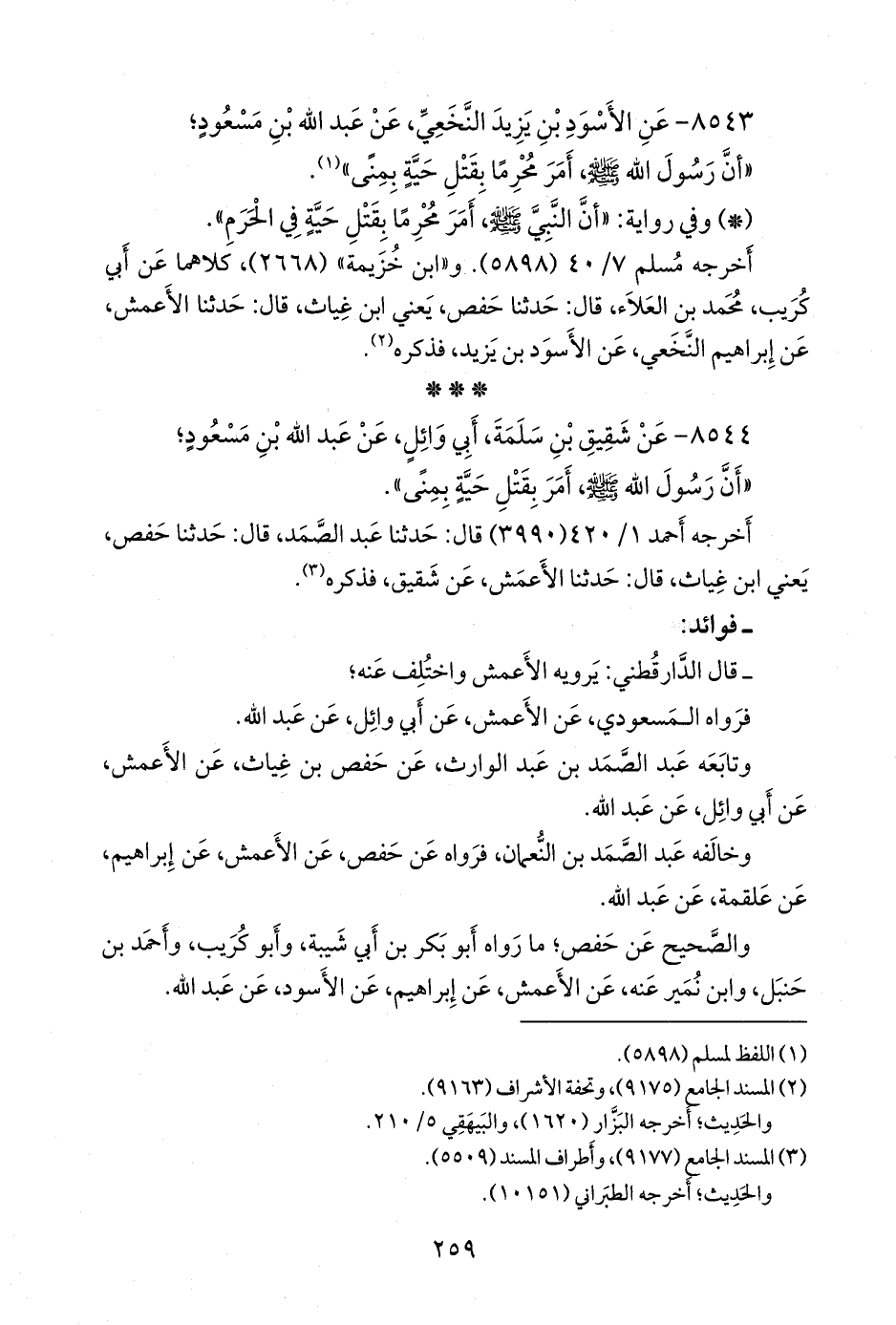 ٨٥٤٣ - عن الأسود بن يزيد النَّخَعي، عن عبد الله بن مسعود؛