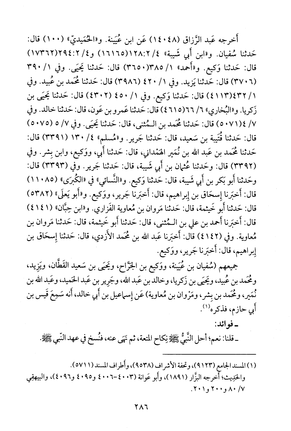 وفي ١/ ٣٩٠ (٣٧٠٦) قال: حدثنا يزيد. وفي ١/ ٤٢٠ (٣٩٨٦) قال: حدثنا محمد بن عبيد. وفي ١/ ٤٣٢ (٤١١٣) قال: حدثنا وكيع. وفي ١/ ٤٥٠ (٤٣٠٢) قال: حدثنا يحيى بن زكريا. و «البخاري» ٦/ ٥٣ (٤٦١٥) قال: حدثنا عَمرو بن عون، قال: حدثنا خالد. وفي ٧/ ٤ (٥٠٧١) قال: حدثنا محمد بن المثنى، قال: حدثنا يحيى. وفي ٧/ ٤ (٥٠٧٥) قال: حدثنا قتيبة بن سعيد، قال: حدثنا جَرير. و «مسلم» ٤/ ١٣٠ (٣٣٩١) قال: حدثنا محمد بن عبد الله بن نُمير الهمداني، قال: حدثنا أبي، ووكيع، وابن بشر. وفي (٣٣٩٢) قال: وحدثنا عثمان بن أبي شيبة، قال: حدثنا جَرير. وفي (٣٣٩٣) قال: وحدثنا أَبو بكر بن أبي شيبة، قال: حدثنا وكيع. و «النَّسَائي» في «الكبرى» (١١٠٨٥) قال: أخبرنا إسحاق بن إبراهيم، قال: أخبرنا جرير، ووكيع. و «أَبو يَعلى» (٥٣٨٢) قال: حدثنا أَبو خيثمة، قال: حدثنا مروان بن معاوية الفزاري. و «ابن حِبَّان» (٤١٤١) قال: أخبرنا أحمد بن علي بن المثنى، قال: حدثنا أَبو خيثمة، قال: حدثنا مروان بن معاوية. وفي (٤١٤٢) قال: أخبرنا عبد الله بن محمد الأزدي، قال: حدثنا إسحاق بن إبراهيم، قال: أخبرنا جرير، ووكيع.