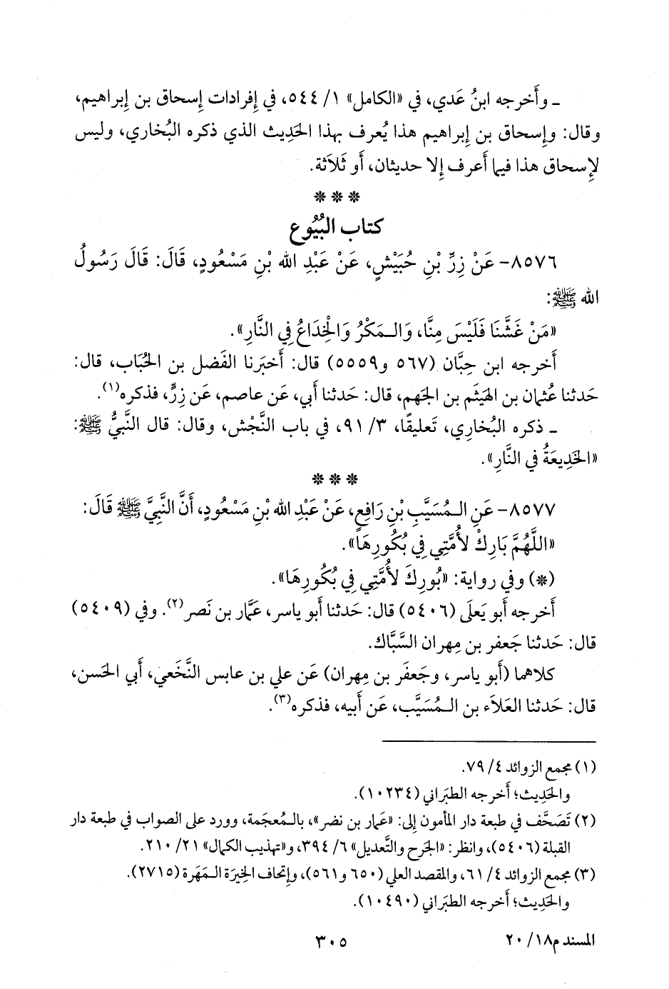 ٨٥٧٧ - عن المُسَيَّب بن رافع، عن عبد الله بن مسعود، أن النبي صَلى الله عَليه وسَلم قال: