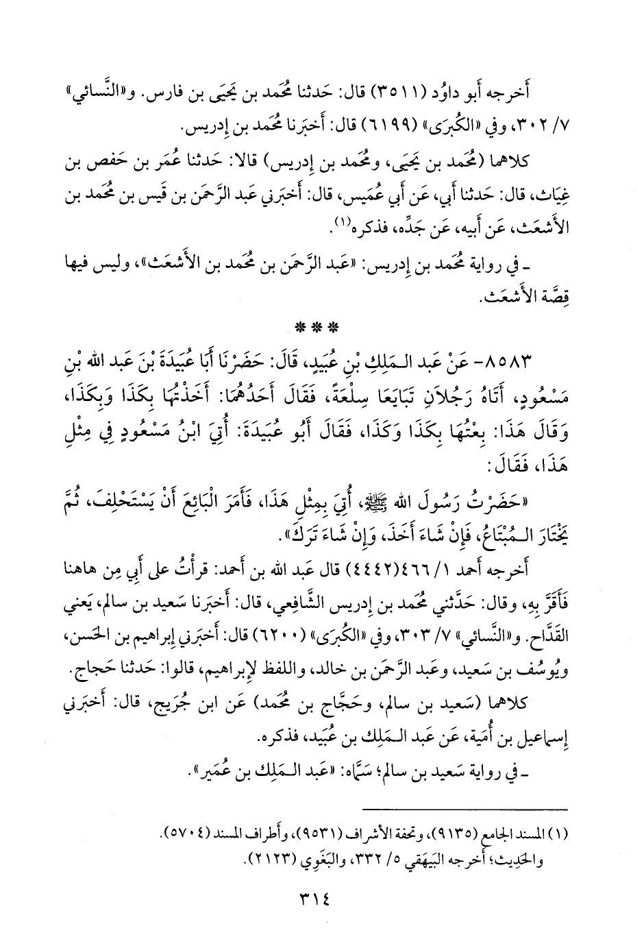 (¬١) المسند الجامع (٩١٣٧)، وتحفة الأشراف (٩٦١١)، وأطراف المسند (٥٧٦٩).
