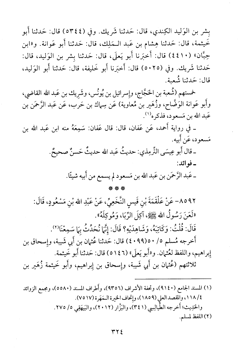 ٨٥٩٢ - عن علقمة بن قيس النَّخَعي، عن عبد الله بن مسعود، قال: