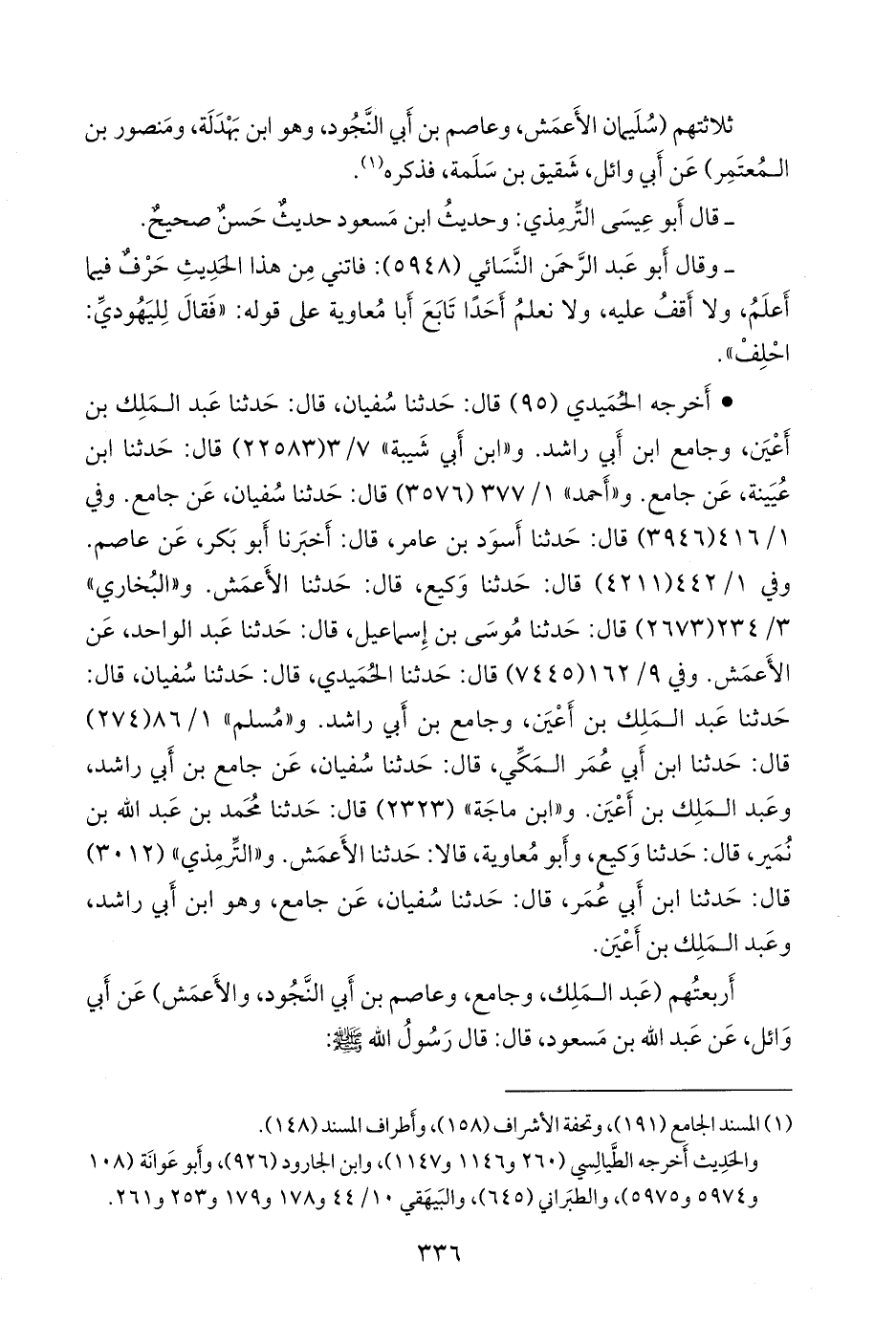 أربعتهم (عبد الملك، وجامع، وعاصم بن أبي النجود، والأعمش) عن أبي وائل، عن عبد الله بن مسعود، قال: قال رسول الله صَلى الله عَليه وسَلم: