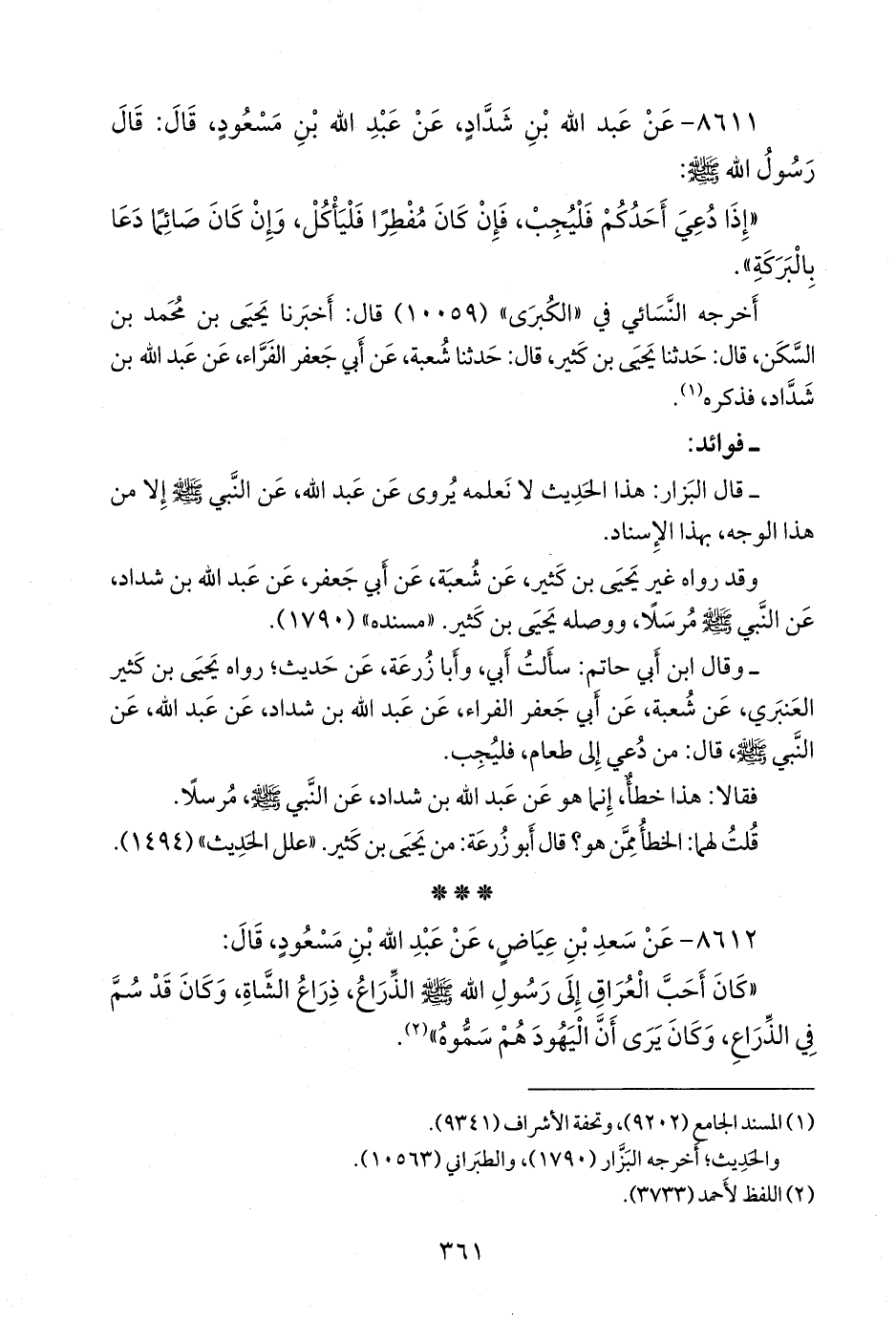 ٨٦١٢ - عن سعد بن عياض، عن عبد الله بن مسعود، قال:
